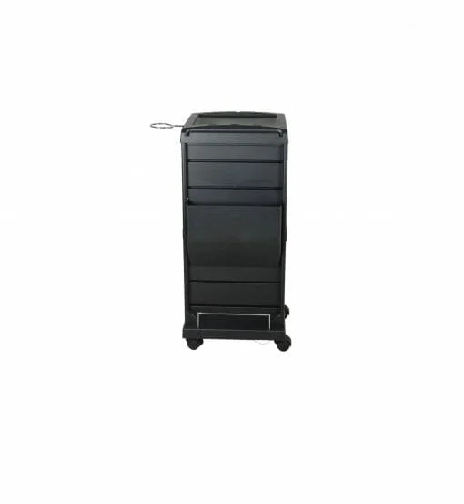 Le chariot pour coiffeurs Altuda est une option haut de gamme en noir, offrant un vaste espace de travail avec une grande mobilité. Doté de 6 rainures intégrées pour les brosses et autres accessoires, d’un support amovible pour sèche-cheveux, de 4 tiroirs amovibles et de 2 rainures ouvertes pour le stockage de produits, ce chariot allie fonctionnalité et commodité dans un design compact.