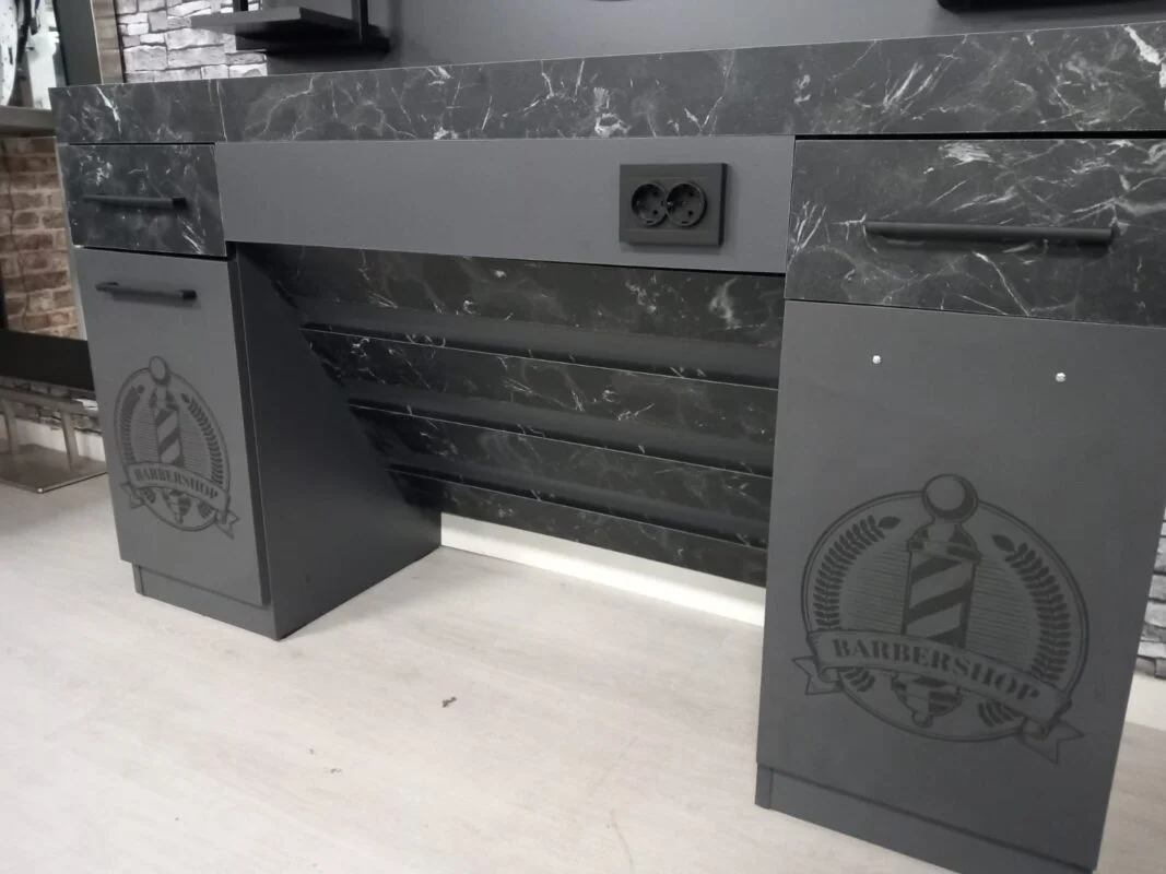 Le Barber One Gray se distingue par son design avant-gardiste, offrant une pièce centrale moderne avec des touches industrielles qui ne passeront pas inaperçues. En plus d’un grand miroir, ce meuble intègre une double prise électrique pour un maximum de commodité, 4 compartiments de rangement, et un effet marbre sophistiqué sur la surface supérieure, alliant praticité et style inégalé.