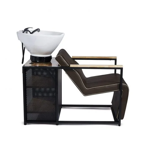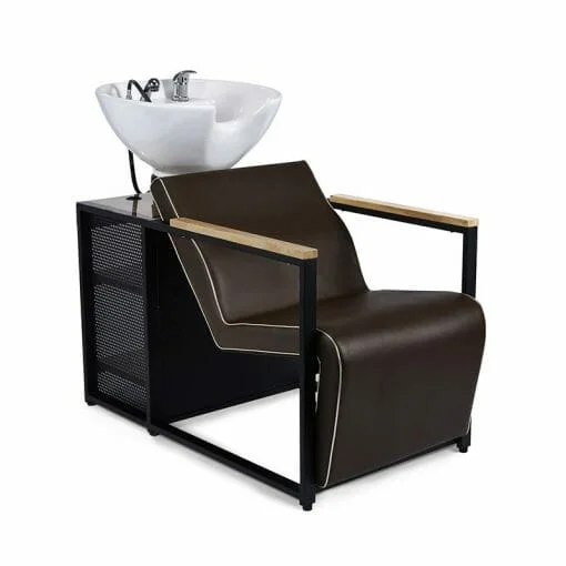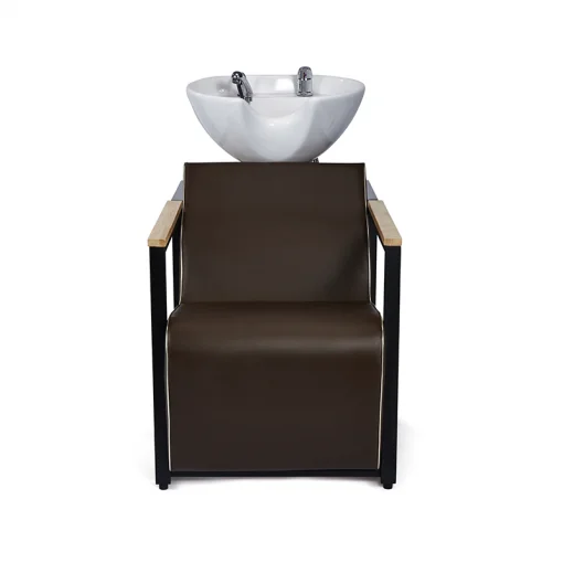 Le siège et le dossier ergonomiques assurent le confort du client pendant le lavage des cheveux, offrant une expérience relaxante et agréable. - Détails en Bois de Chêne