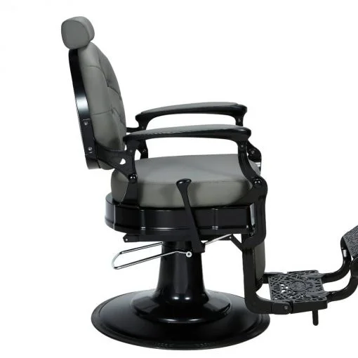 Le fauteuil de barbier Panther (gris) allie élégance discrète et fonctionnalités avancées. Il se distingue par sa finition métallique mate, son revêtement en PVC poly-cuir ignifuge de haute qualité, et sa mousse haute densité pour un confort supérieur. Équipé d’une pompe hydraulique efficace pour les réglages de hauteur, d’une rotation complète à 360°, et d’un repose-pieds réversible et inclinable, cette chaise garantit une expérience optimale tant pour le professionnel que pour le client. Avec un design léger mais robuste, le Panther est le choix parfait pour les salons modernes cherchant à allier style et praticité.