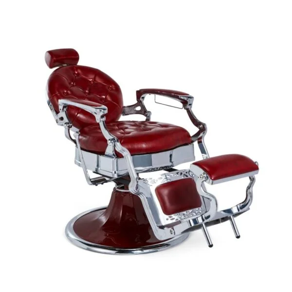 Nous vous présentons le Titanic, une Fauteuil de Barbier exceptionnelle de couleur rouge framboise qui allie un style rétro et vintage à une fonctionnalité sans précédent.