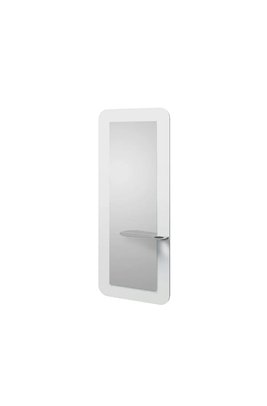 Le Zoo se distingue par sa structure en aggloméré haute densité, recouverte des deux côtés d’un papier mélaminé blanc, offrant non seulement une apparence propre et raffinée, mais aussi résistance et durabilité. Ce miroir argenté, avec des coins polis et des bords arrondis, offre une vue claire et détaillée, essentielle pour tous les services de coiffure. Le cadre périphérique et l’étagère sont en acier inoxydable avec finition mate, ajoutant une touche de sophistication et fournissant un espace pratique pour les outils et produits.